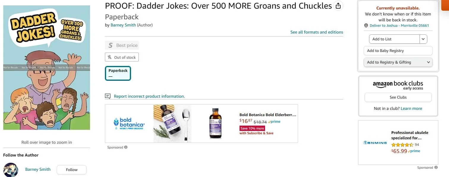 I'm thrilled to share some exciting news: the physical proof of 'Dadder Jokes' has been ordered! This is a significant milestone in bringing this book to life, and I couldn't be more excited.