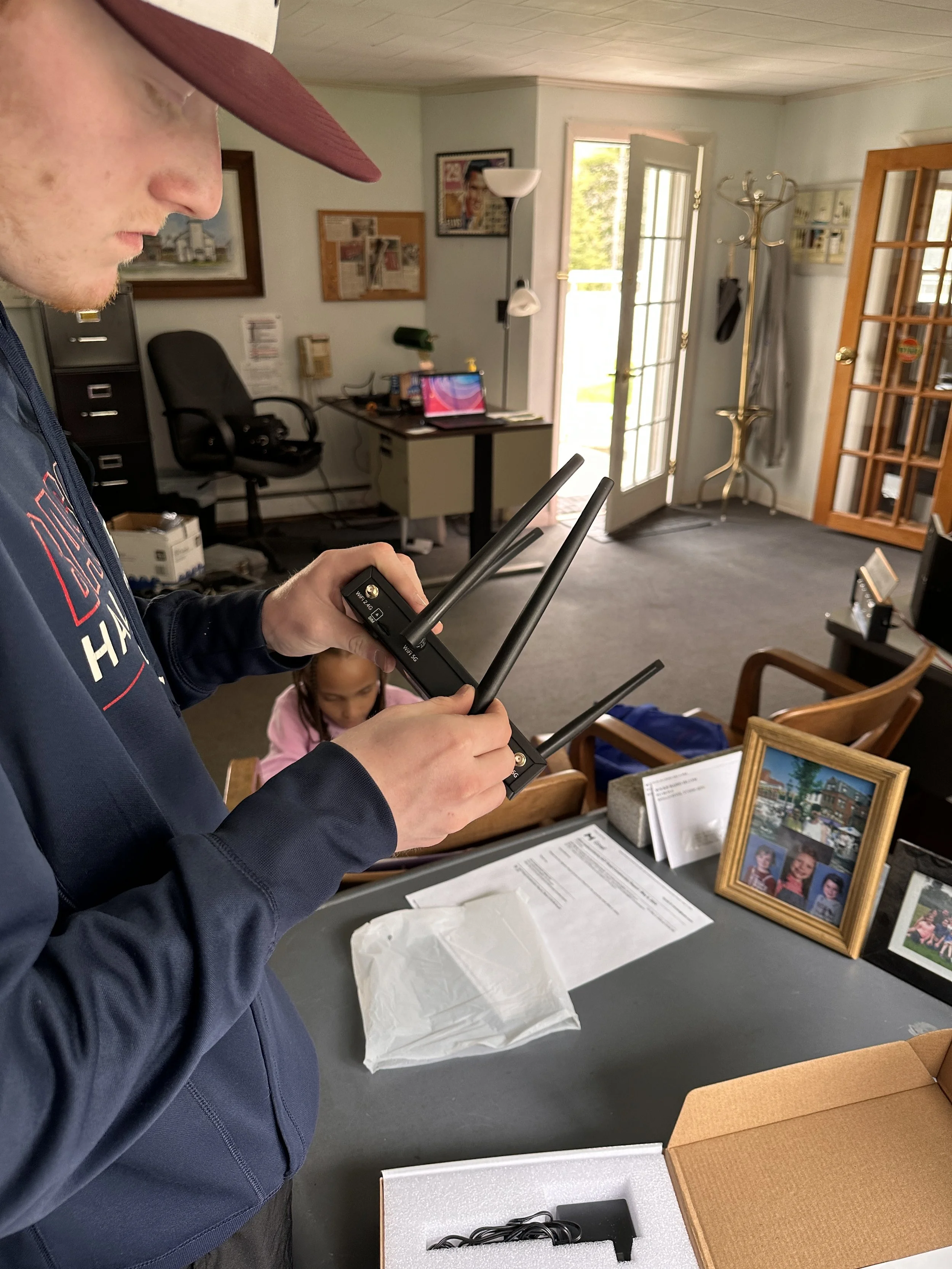 Christopher testing the remote broadcasting equipment
