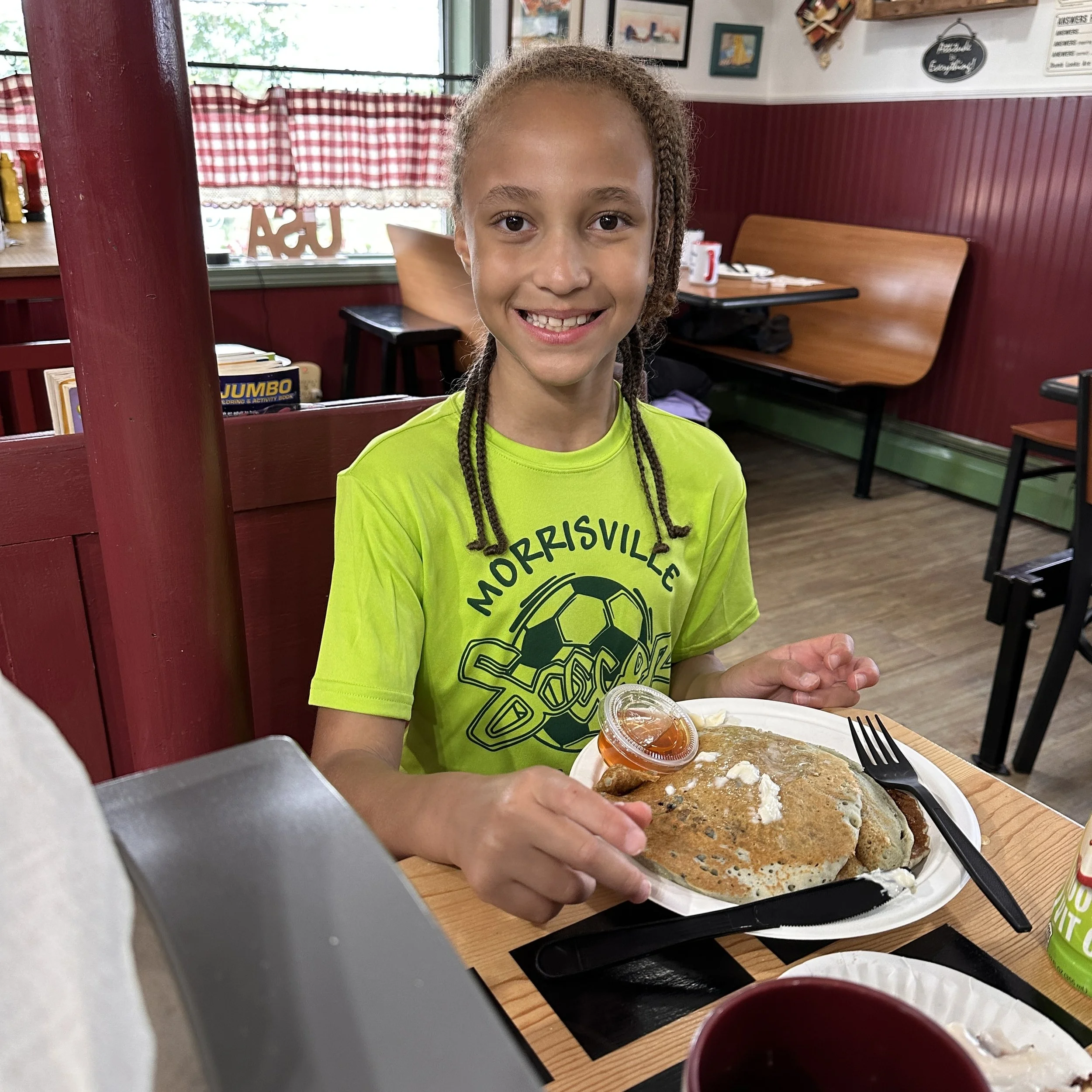 Pancakes after her first soccer game!